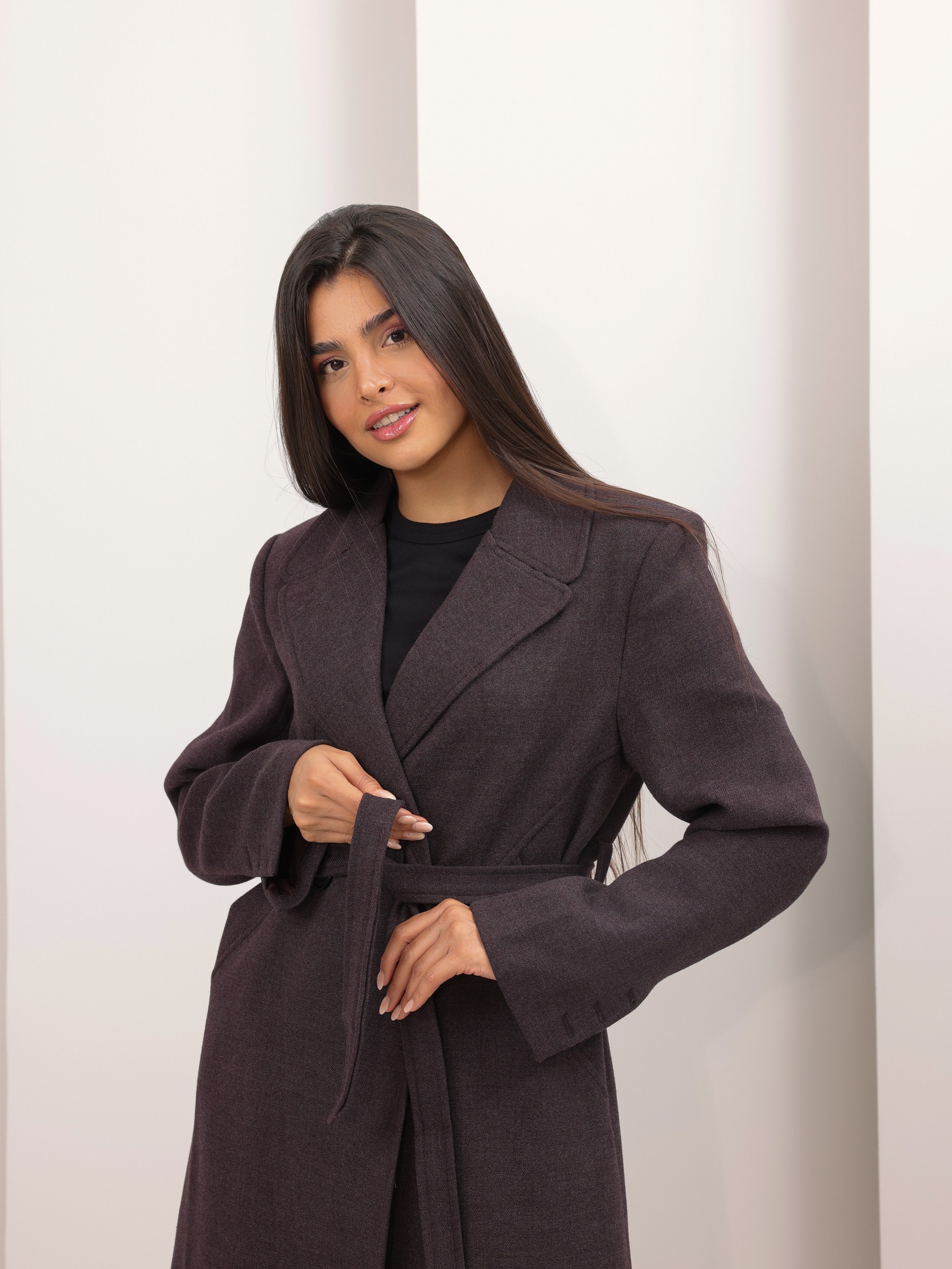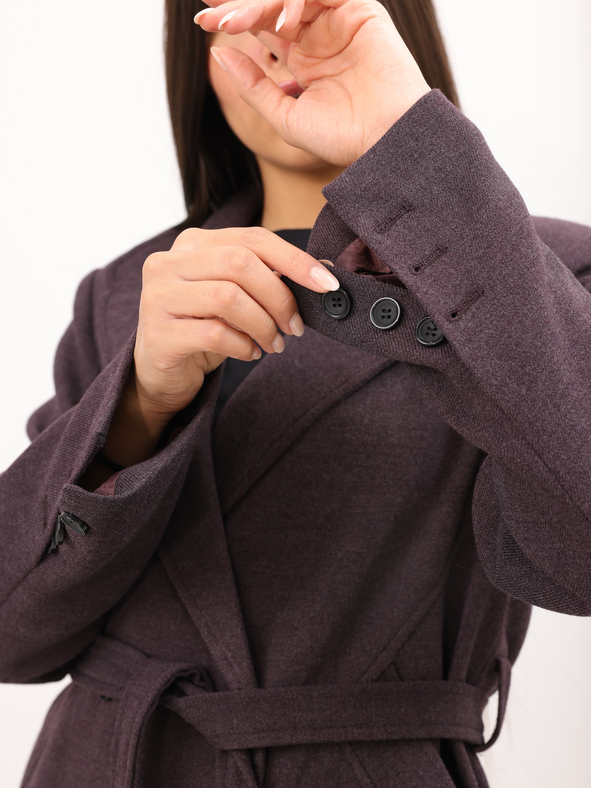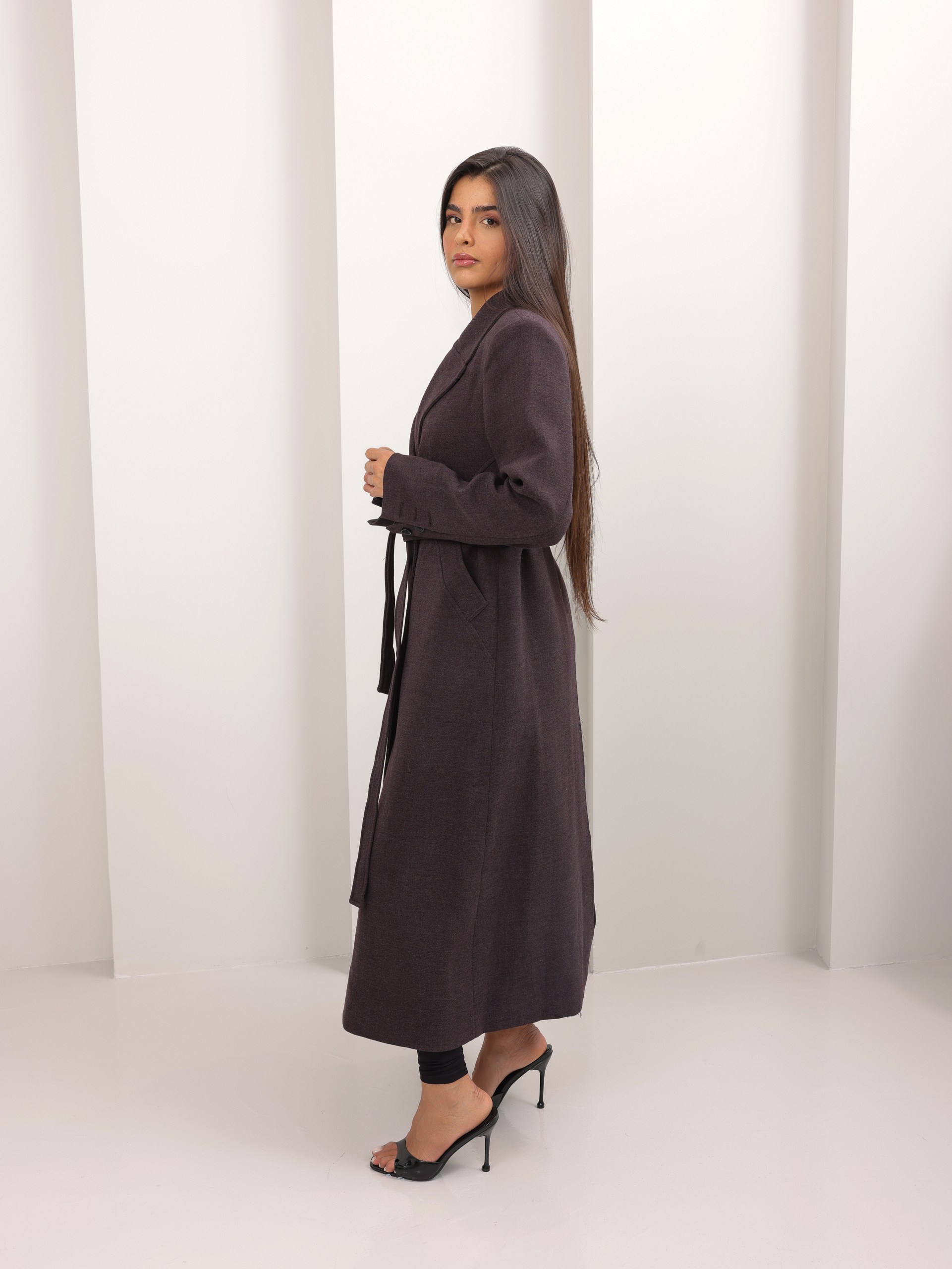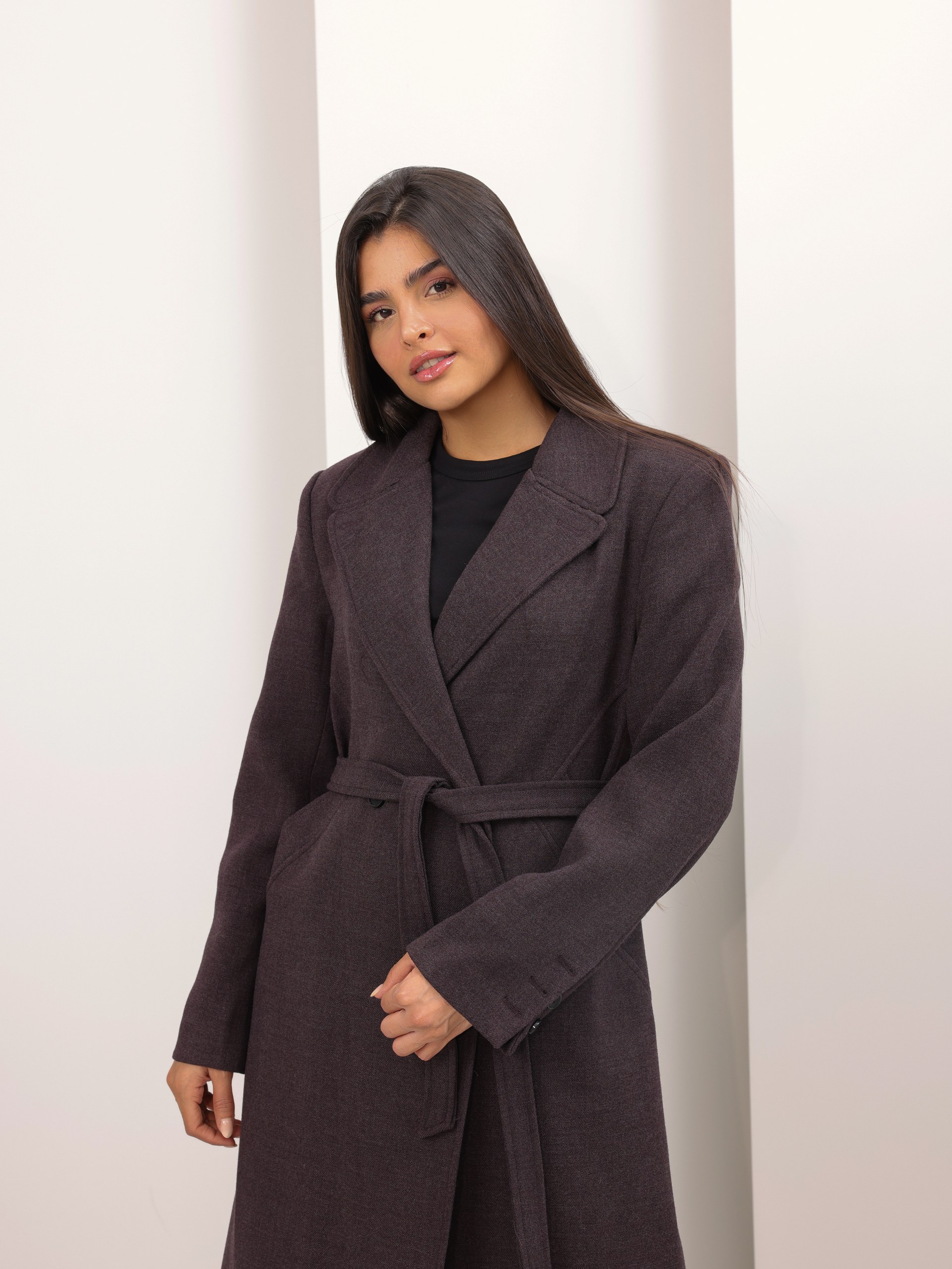 جاكيت شتوي أنيق بلون بنفسجي غامق فاخر، بتصميم طويل يعكس فخامة وذوق راقٍ. يتميز بحزام على الخصر لإبراز القوام بأسلوب أنثوي جذاب، مع خامة دافئة ومريحة مثالية لأيام الشتاء الباردة. قطعة تجمع بين الأناقة والدفء بكل تفاصيلها